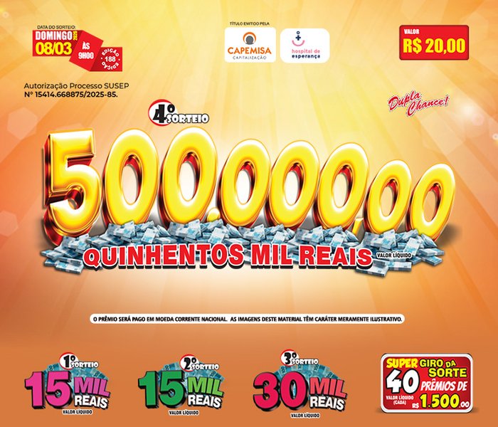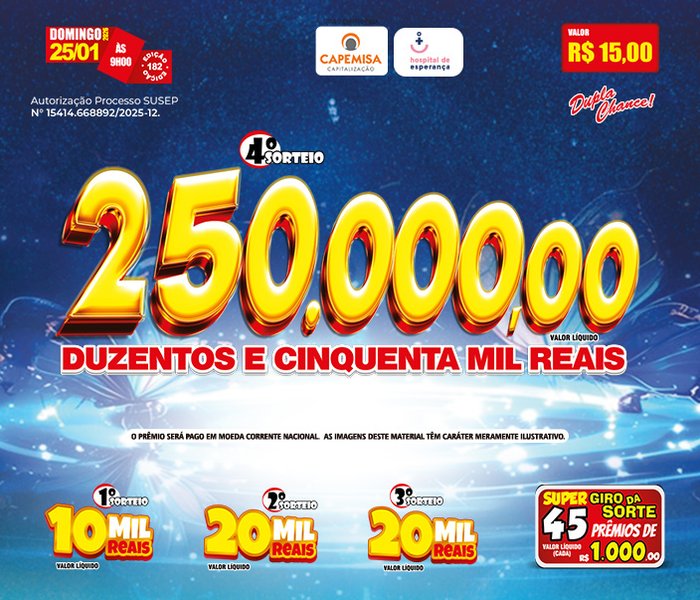 Juntos, Cia Cap e o Hospital de Esperança unem forças para transformar vidas, oferecendo a chance de concorrer a prêmios e, ao mesmo tempo, apoiar e proporcionar assistência médica, hospitalar e social aos portadores de câncer da cidade de Presidente Prudente e de toda a Região do Oeste Paulista.