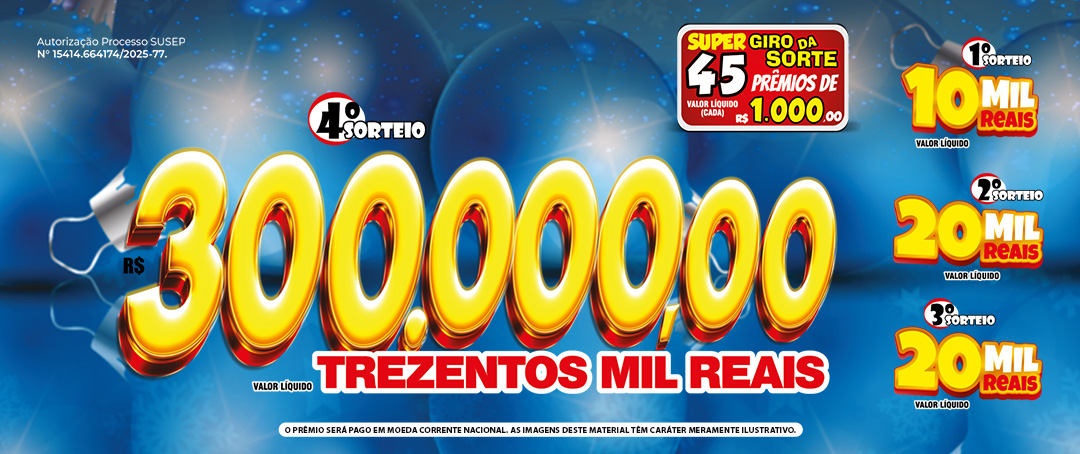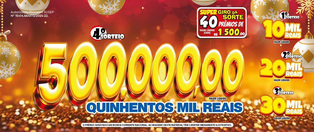 40 PRÊMIOS DE R$ 1.500,00 (cada) - Valor líquido